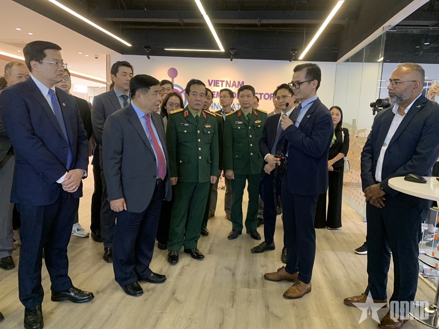 | Phó thủ tướng Chính phủ Nguyễn Chí Dũng và các đại biểu tham quan Trung tâm Nghiên cứu & Phát triển và Trung tâm Xuất sắc về Trí tuệ nhân tạo và Bản sao số. |