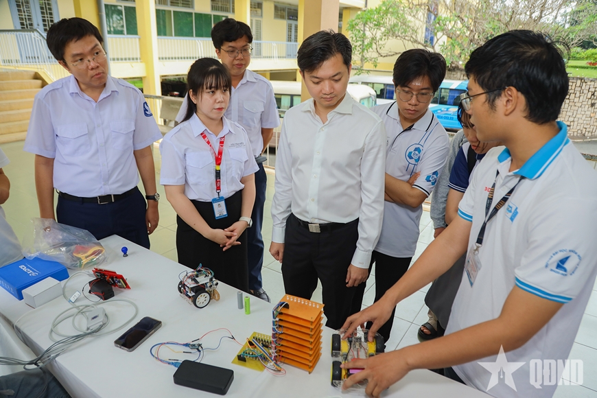 Các đại biểu tham quan trưng bày những sản phẩm nghiên cứu khoa học của sinh viên TP Hồ Chí Minh.