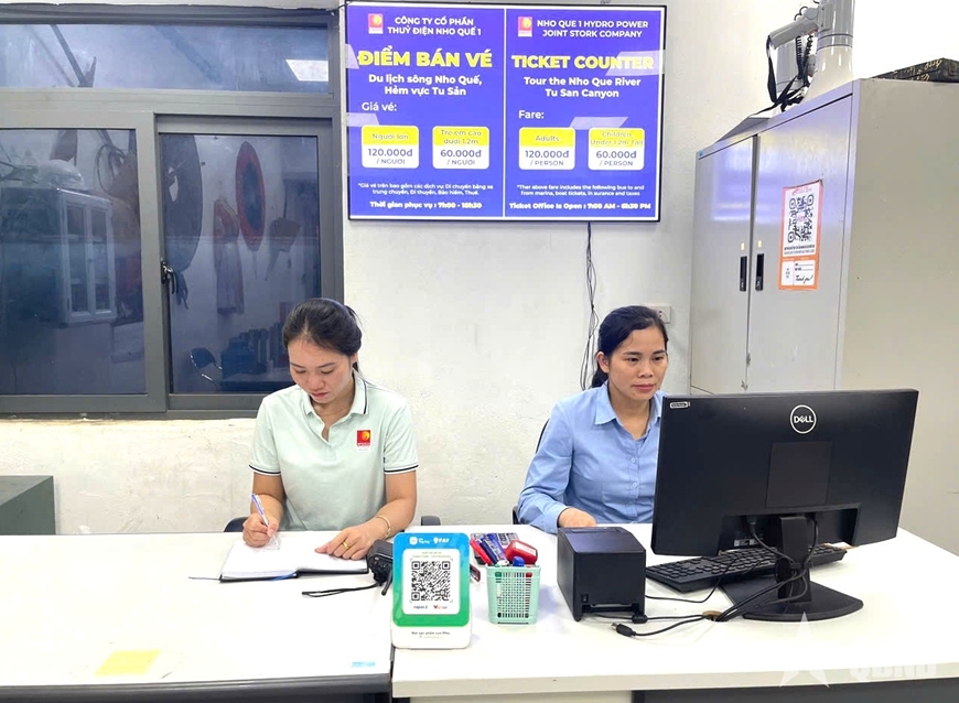 Công ty Thủy điện Nho Quế 1 tại thực hiện ứng dụng nền tảng số trong quản lý và thanh toán điện tử, nâng cao hiệu quả phục vụ du khách. |