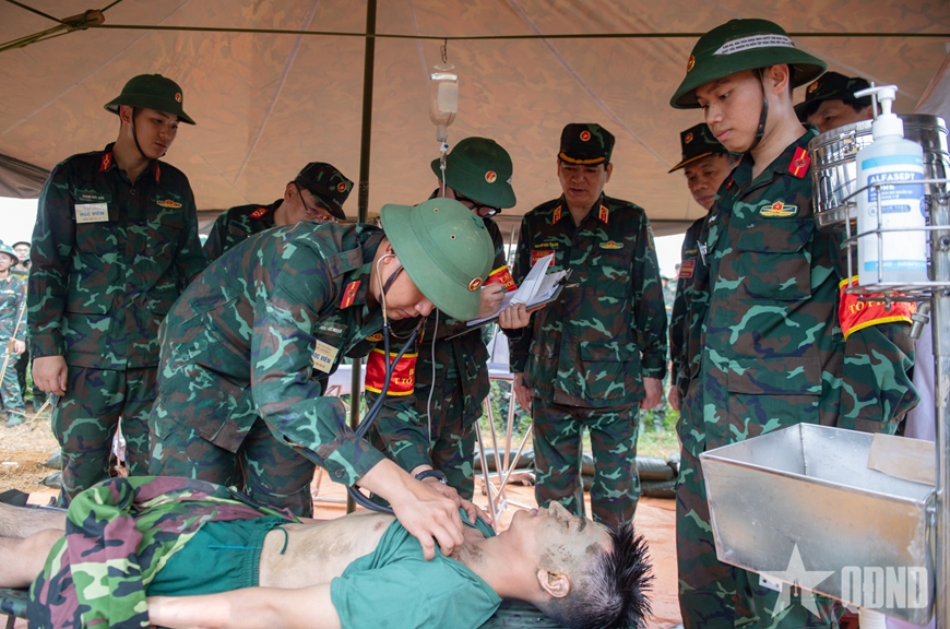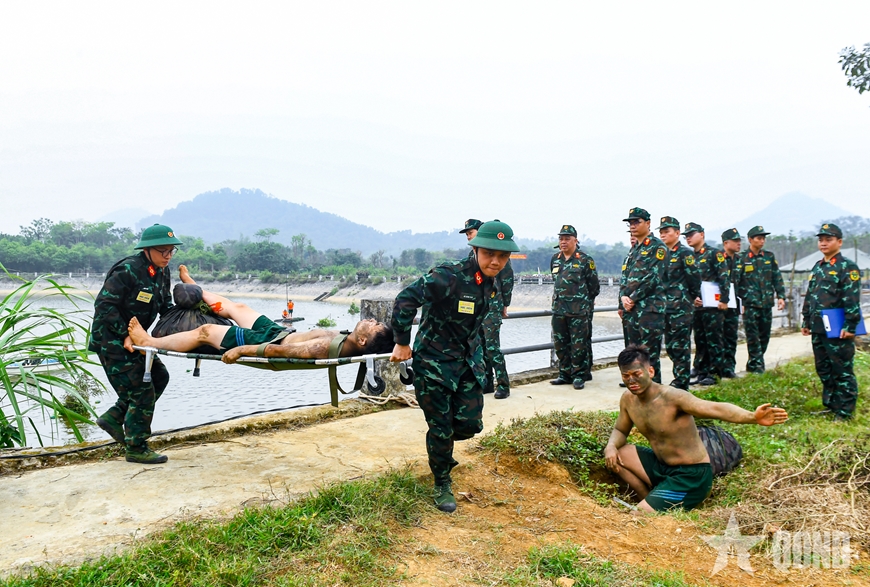 Đây là một trong những nội dung quan trọng của đợt diễn tập, bao gồm: Tổ chức vượt sông trong hành quân chiến đấu; vận chuyển trang thiết bị y tế; tổ chức cứu chữa thương, bệnh binh trong quá trình hành quân, vượt sông bị thương...