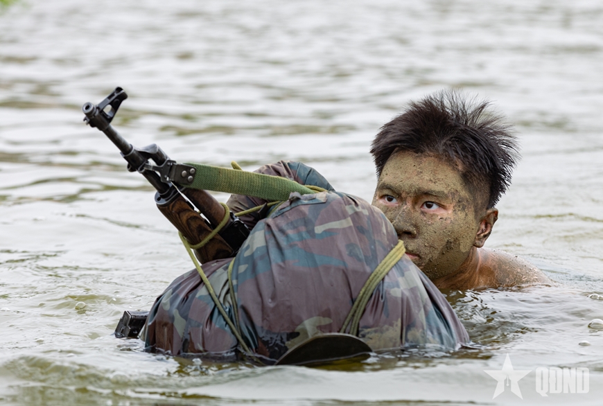 Ngày 15-4, Học viện Quân y tổ chức cho học viên khóa 54 tham gia diễn tập chiến thuật vòng tổng hợp cuối khóa thực hành vượt sông trong hành quân chiến đấu.