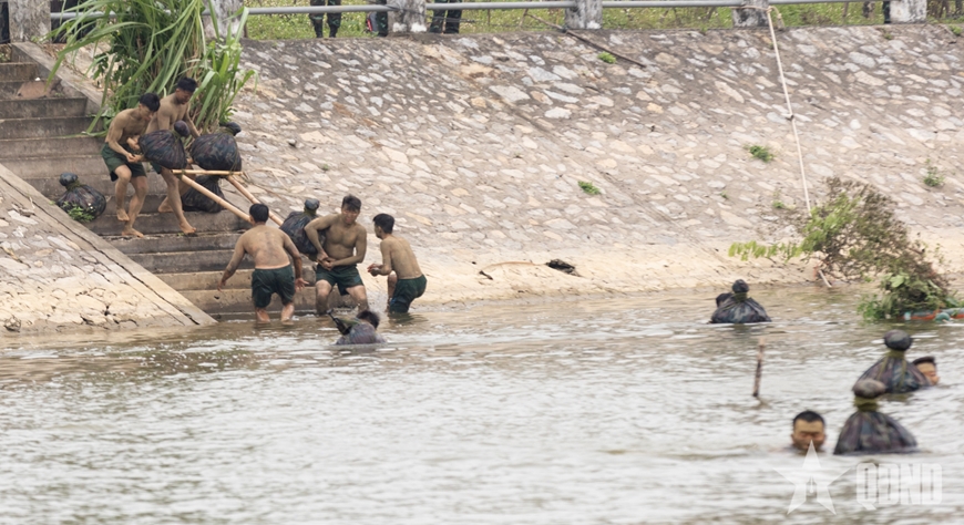 Quá trình vượt sông, đạo diễn phát tình huống có quân nhân kiệt sức và đuối nước, tổ chức bơi cứu đuối, đưa lên trạm quân y, tiến hành cấp cứu.