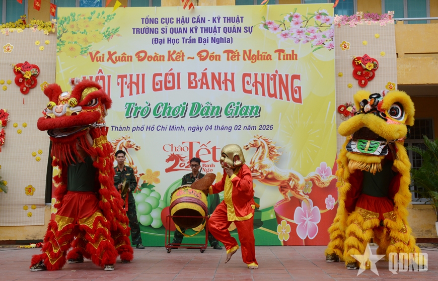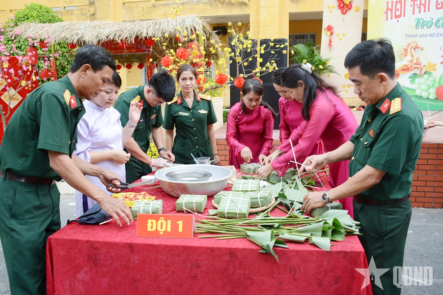 Song song với hội thi gói bánh chưng, Trường Sĩ quan Kỹ thuật Quân sự còn phối hợp tổ chức nhiều hoạt động văn hóa, văn nghệ, múa lân sư rồng, trò chơi dân gian sôi nổi. Những tiết mục hát múa ca ngợi Đảng, Bác Hồ, Quân đội nhân dân Việt Nam anh hùng và quê hương đất nước vang lên rộn rã. Các trò chơi dân gian như kéo co, nhảy bao bố, quay số trúng thưởng, ném vòng cổ chai… thu hút đông đảo cán bộ, học viên và nhân dân tham gia, tạo nên không khí vui tươi, phấn khởi.