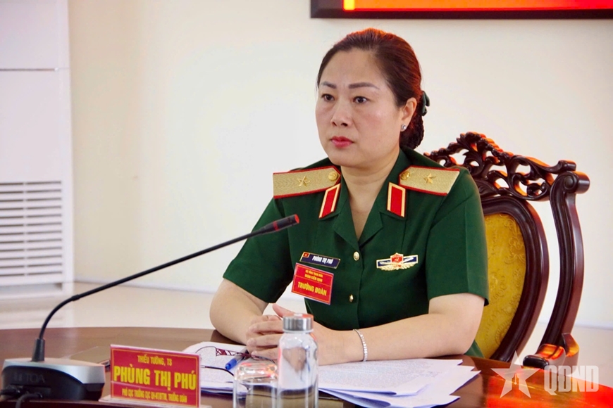 Thiếu tướng, TS Phùng Thị Phú, Phó cục trưởng Cục Quân huấn - Nhà trường (Bộ Tổng Tham mưu) chủ trì kết luận kiểm định.