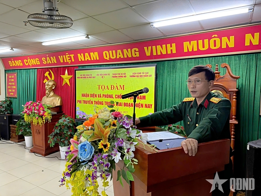 Buổi tọa đàm “Nhận diện và phòng, chống tội phạm phi truyền thống trong giai đoạn hiện nay” diễn ra trong không khí nghiêm túc, cởi mở và thu hút đông đảo cán bộ, học viên tham dự. Phát biểu khai mạc, Đại tá Phạm Quang Thắng, Bí thư Đảng ủy, Chính trị viên Hệ 1, Học viện Chính trị nhấn mạnh: “Trong bối cảnh tội phạm công nghệ cao, lừa đảo qua mạng, chiếm đoạt dữ liệu cá nhân ngày càng phức tạp, việc nâng cao nhận thức pháp luật, ý thức kỷ luật và tinh thần cảnh giác cho cán bộ, học viên và nhân dân là yêu cầu cấp bách. Chúng tôi coi đây là giải pháp quan trọng để phòng ngừa vi phạm từ sớm, từ xa”.