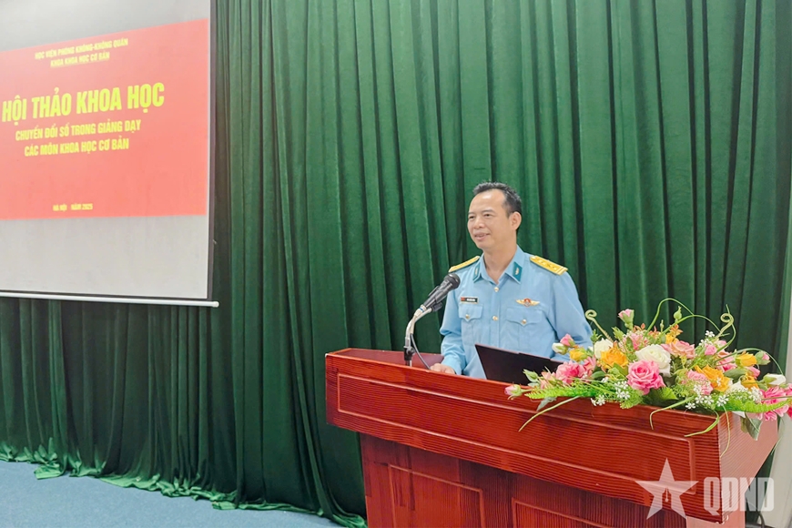 Phát biểu tại hội thảo, Đại tá, TS Bùi Quảng Nam nhấn mạnh: “Đối với các học viện, nhà trường trong Quân đội, trong đó có Học viện PK-KQ, chuyển đổi số có ý nghĩa chiến lược, giúp nâng cao chất lượng đào tạo sĩ quan, kỹ sư và cán bộ chỉ huy, đáp ứng yêu cầu, nhiệm vụ sẵn sàng chiến đấu và chiến đấu trong điều kiện chiến tranh công nghệ cao. Trong đó, các môn khoa học cơ bản đóng vai trò nền tảng, tạo cơ sở cho các học phần chuyên ngành và tư duy khoa học của người học”.