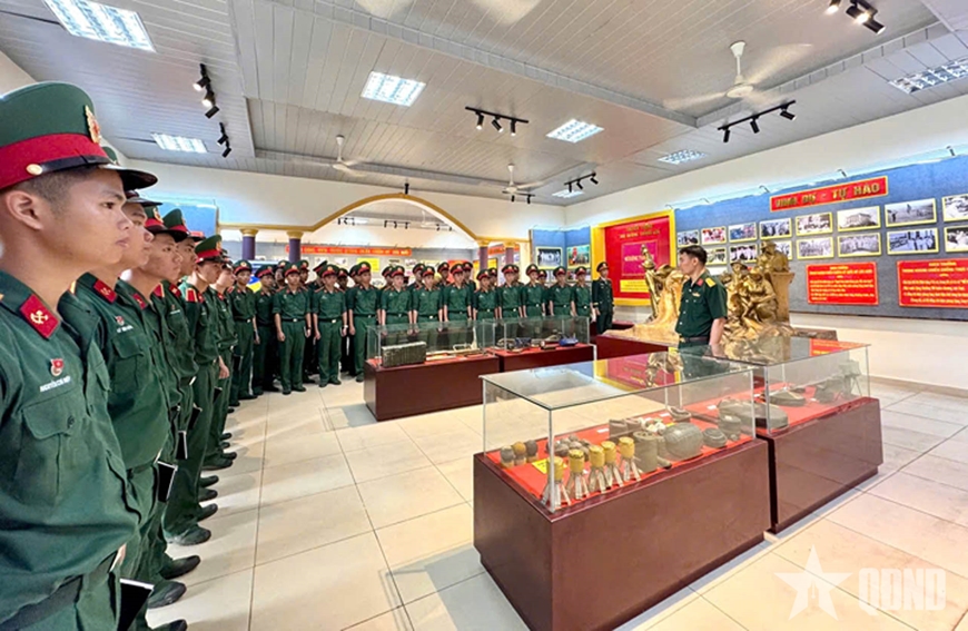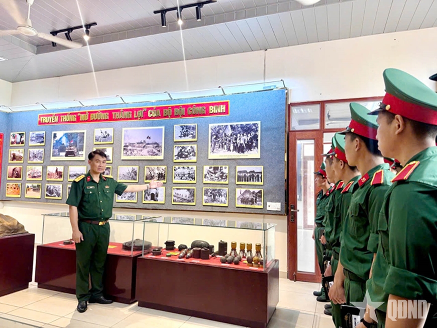 | Cán bộ, học viên Trường Sĩ quan Công binh tham quan tìm hiểu tại Nhà truyền thống. |