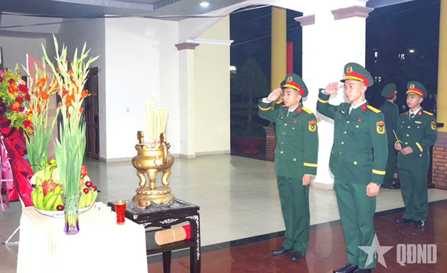 | Cán bộ Trường Sĩ quan Công binh dâng hương tưởng nhớ Đại tá Ung Răng và các Anh hùng liệt sĩ tại Nhà truyền thống Nhà trường. |