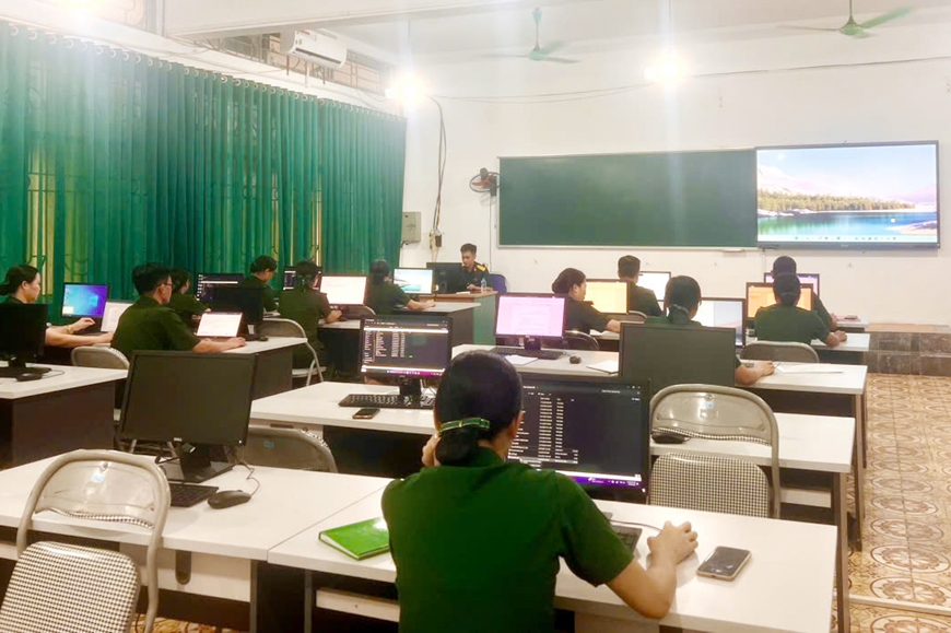 Cán bộ, giảng viên Trường Sĩ quan Lục quân 1 tham gia lớp đào tạo công nghệ thông tin nâng cao. |