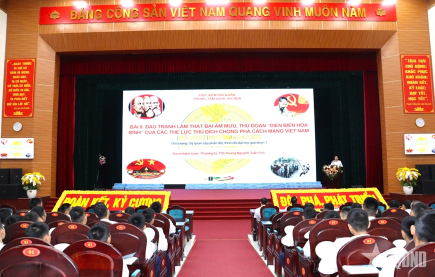 Phần thi kiến thức tập trung những nội dung cơ bản trong Nghị quyết Đại hội XIV của Đảng, các Nghị quyết Trung ương khóa XIII; Nghị quyết Đại hội đại biểu Đảng bộ Quân đội lần thứ XII, Đại hội Đảng bộ Quân chủng lần thứ XIV, Đại hội Đảng bộ Học viện Hải quân lần thứ XXI, các nghị quyết, chỉ thị, hướng dẫn của Quân ủy Trung ương, Bộ Quốc phòng, Tổng cục Chính trị, Quân chủng từ năm 2023 đến nay; chức năng, nhiệm vụ, nguyên tắc công tác tuyên huấn; “Quy chế công tác quản lý tư tưởng quân nhân; nắm và định hướng dư luận trong Quân đội nhân dân Việt Nam”; các tình huống công tác tư tưởng; công tác bảo vệ nền tảng tư tưởng của Đảng; công tác quản lý kỷ luật...