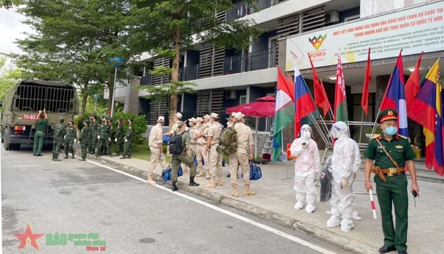Đầu tháng 6-2021, tôi (Đại tá Nguyễn Chí Thành - Trưởng phòng châu Âu, Cục Đối ngoại), đã cùng các cơ quan Bộ Quốc phòng đi tiền trạm, khảo sát ở Binh đoàn 12, Trung đoàn 102, Học viện Viettel để chuẩn bị địa điểm đón các đoàn quốc tế. Qua nghe báo cáo cơ sở vật chất, doanh trại; Thủ trưởng Bộ Quốc phòng đã quyết định giao nhiệm vụ cho Tập đoàn Viettel thực hiện đối ngoại quốc phòng, đón toàn bộ 7 đoàn nước bạn đến cách ly, trước khi tham gia hội thao, gồm: Nga, Belarus, Uzbekistan, Venezuela, Bangladesh, Mali và Lào.