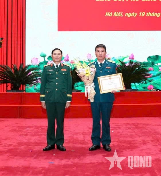 Đại tướng Nguyễn Tân Cương, Ủy viên Trung ương Đảng, Ủy viên Thường vụ Quân ủy Trung ương, Tổng Tham mưu trưởng, Thứ trưởng Bộ Quốc phòng trao bằng khen tặng Đại tá, Tiến sĩ Bùi Như Khuê tại Lễ trao tặng bằng khen cho các nhà giáo Quân đội được công nhận đạt tiêu chuẩn chức danh Giáo sư, Phó giáo sư năm 2025.