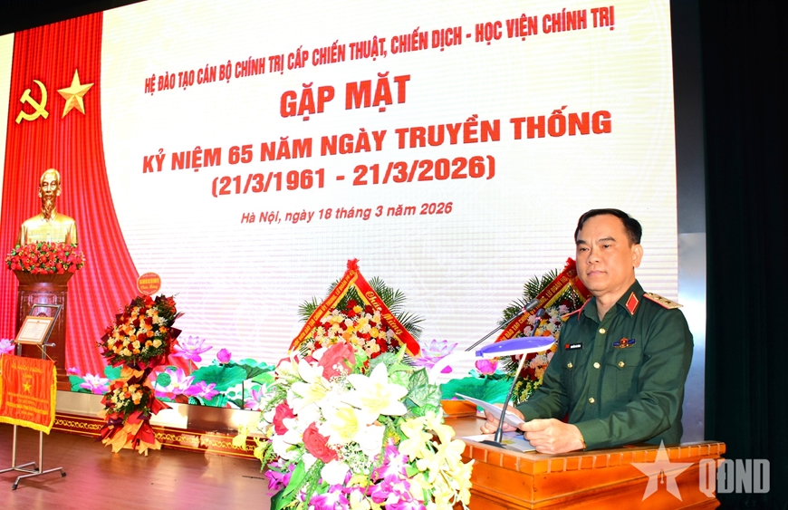 Phát biểu tại buổi gặp mặt, Trung tướng, PGS, TS Nguyễn Bá Hùng biểu dương, chúc mừng, biểu dương những thành tích mà cán bộ, học viên, nhân viên, chiến sĩ Hệ Đào tạo cán bộ chính trị cấp chiến thuật, chiến dịch đạt được trong thời gian qua.