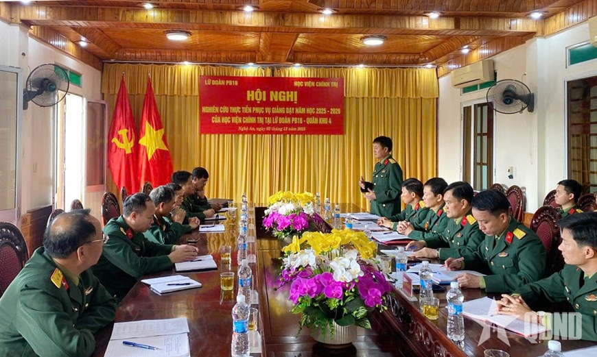 | Hội nghị nghiên cứu thực tiễn phục vụ giảng dạy năm học 2025-2026 của Học viện Chính trị tại Lữ đoàn Pháo binh 16 (Quân khu 4). Ảnh: qdnd.vn |