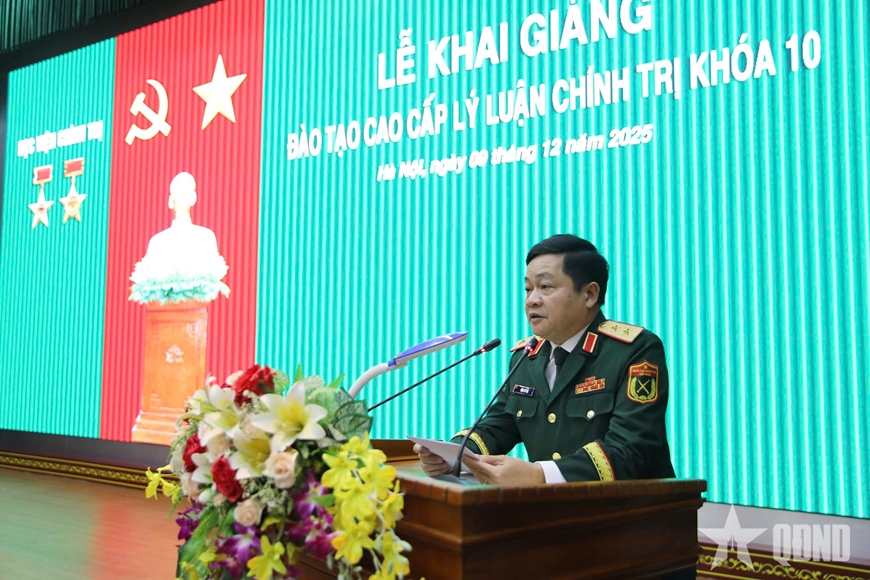 Trung tướng, PGS, TS Đặng Sỹ Lộc, Giám đốc Học viện Chính trị phát biểu tại Lễ khai giảng đào tạo cao cấp lý luận chính trị, khóa 10, năm 2025. Ảnh: qdnd.vn