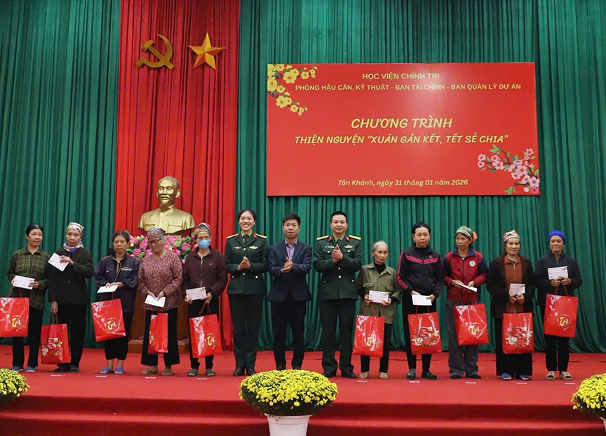 * Cùng ngày, tại xã Tân Khánh, tỉnh Thái Nguyên, Hội Phụ nữ Phòng Hậu cần, Kỹ thuật phối hợp với Hội phụ nữ Ban Tài Chính, Ban Quản lý dự án Học viện Chính trị cũng đã tổ chức chương trình “Xuân gắn kết, Tết sẻ chia”.
