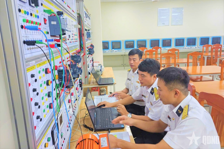 Ba là, tăng cường hạ tầng công nghệ và môi trường học tập số. Học viện Hải quân được đầu tư, nâng cấp hệ thống hạ tầng công nghệ phục vụ giáo dục và đào tạo, nghiên cứu khoa học. Hiện nay, hạ tầng mạng máy tính của Học viện đã phủ rộng 100% đầu mối, bảo đảm đường truyền thông suốt, có hệ thống máy chủ trung tâm đạt chuẩn, phòng studio phục vụ giảng dạy trực tuyến và hệ thống camera giám sát hiện đại. Các phòng học, phòng thí nghiệm, trung tâm mô phỏng chiến thuật được đầu tư đồng bộ. Nhiều phòng học đã được trang bị bảng thông minh, màn hình tương tác, Smart TV. Mỗi tiết học là một trải nghiệm tương tác giữa người dạy, người học và công nghệ, là điều kiện cho đội ngũ giảng viên tiếp cận bài giảng trong môi trường số.