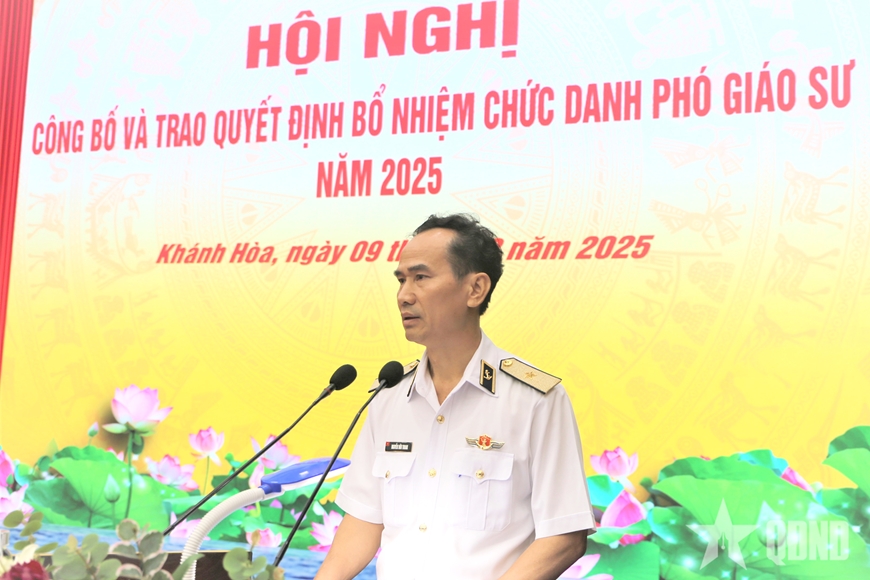 Phát biểu tại hội nghị, Chuẩn đô đốc Nguyễn Hữu Thoan, Chính ủy Học viện Hải quân biểu dương, ghi nhận những đóng góp to lớn của đội ngũ các nhà khoa học đầu ngành của Học viện, trong đó có 4 đồng chí có quyết định bổ nhiệm chức danh Phó giáo sư năm 2025. Thành tích hôm nay không chỉ là niềm vinh dự của các tân Phó giáo sư mà còn là niềm tự hào của Học viện Hải quân. Kết quả này tiếp tục khẳng định hướng đi đúng đắn của Học viện trong xây dựng đội ngũ nhà giáo có trình độ chuyên môn cao, tâm huyết và bản lĩnh, đáp ứng yêu cầu ngày càng cao của nhiệm vụ giáo dục và đào tạo, nghiên cứu khoa học.