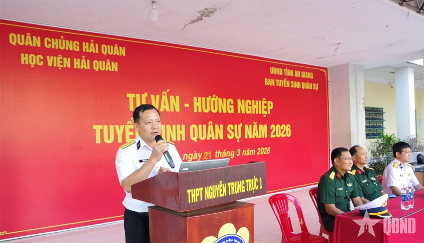 Được tiếp cận thông tin một cách nhanh chóng, học sinh Tiêu Khánh Quốc, Lớp 12A11, Trường THPT Nguyễn Trung Trực 1 (phường Rạch Giá, tỉnh An Giang) chia sẻ: “Qua buổi hướng nghiệp, tư vấn tuyển sinh với cách truyền đạt, trao đổi trực tiếp của các cán bộ Hải quân, video giới thiệu, các thông tin trên hệ thống trực tuyến rất dễ tra cứu, giúp em hiểu biết nhiều hơn về môi trường Quân đội và các thông tin tuyển sinh vào Học viện Hải quân năm 2026”.