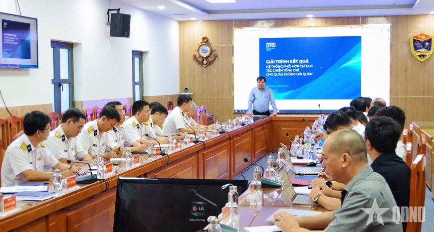 Hội nghị đã nghe ông Lê Nguyễn Trường Giang giới thiệu một số vấn đề về xây dựng “Nhà trường Quân đội thông minh”, ứng dụng chuyển đổi số và giải trình kết quả hệ thống phối hợp chỉ huy trong Quân chủng Hải quân.