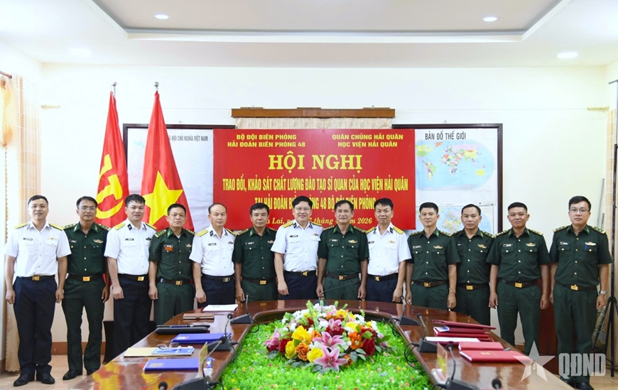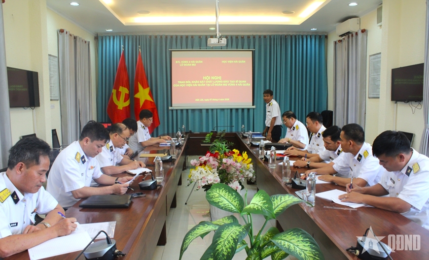 Tại buổi làm việc, đoàn công tác đã trao đổi với lãnh đạo, chỉ huy các đơn vị và đánh giá năng lực công tác của các đối tượng học viên tốt nghiệp từ năm 2024 đến nay, bao gồm đào tạo lữ đoàn trưởng, chủ nhiệm hậu cần - kỹ thuật lữ đoàn; đào tạo chuyển loại thuyền trưởng, chính trị viên tàu; đào tạo sĩ quan cấp phân đội…