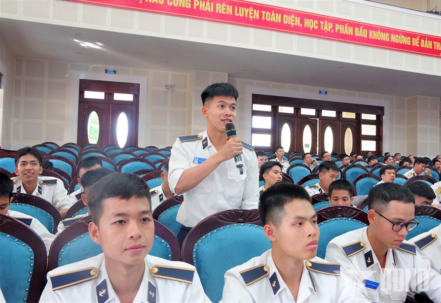 | Học viên đào tạo sĩ quan cấp phân đội trả lời các vấn đề đặt ra trong bài giảng. |