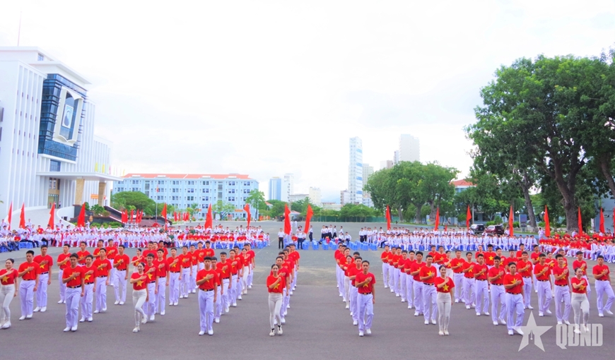 | Phần thi 5 vũ điệu trong sinh hoạt tập thể cho bộ đội của Tiểu đoàn quản lý học viên. |