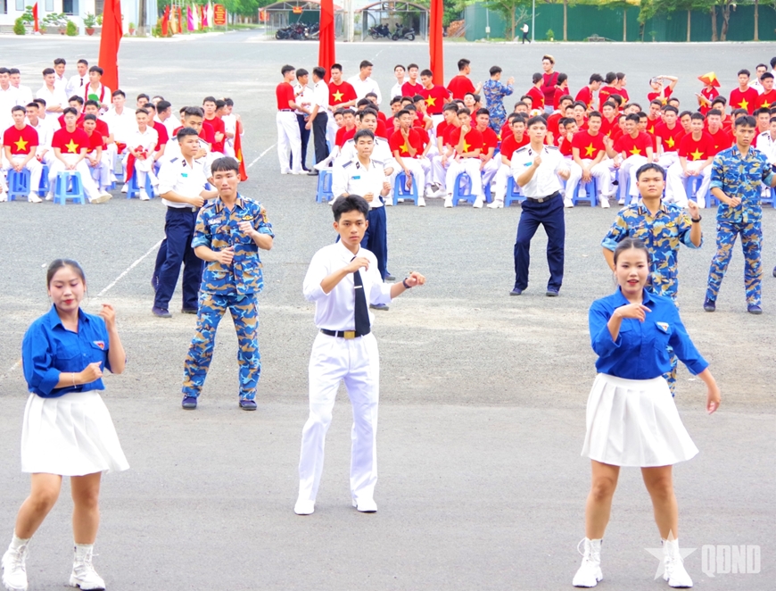 Phần thi 5 vũ điệu trong sinh hoạt tập thể cho bộ đội của Hội phụ nữ Học viện Hải quân.