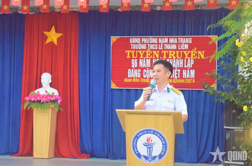 Báo cáo viên của Học viện Hải quân đã tuyên truyền đến giáo viên và học sinh về hoàn cảnh ra đời của Đảng Cộng sản Việt Nam; vai trò lãnh đạo của Đảng trong các giai đoạn cách mạng; những thắng lợi vĩ đại của dân tộc dưới sự lãnh đạo của Đảng, công cuộc đổi mới, hội nhập và phát triển đất nước hiện nay; thông tin một số kết quả nổi bật của Quân chủng Hải quân, Học viện Hải quân trong nhiệm vụ bảo vệ chủ quyền biển, đảo Tổ quốc.