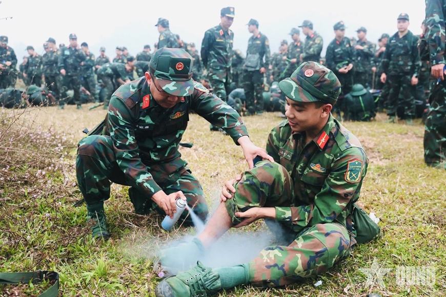 Trên các quãng đường dốc, cán bộ các cấp trực tiếp bám sát đội hình, kịp thời nhắc nhở điều chỉnh tốc độ và tư thế mang vác để tránh xảy ra sự cố. Các tổ quân y cơ động đi cùng đội hình, luôn duy trì quan sát, sẵn sàng xử trí kịp thời các biểu hiện mệt, căng cơ hoặc trượt ngã do địa hình và thời tiết gây ra.