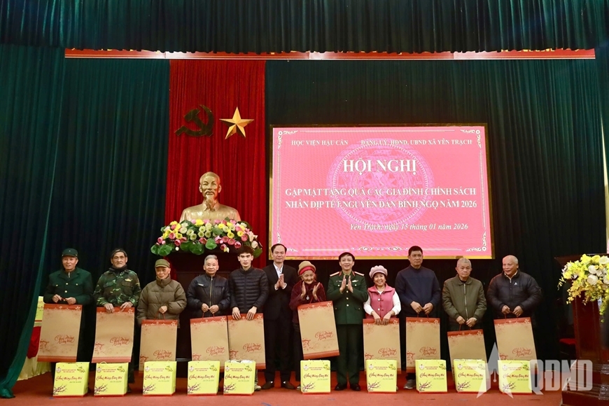 Lãnh đạo Học viện Hậu cần và xã Yên Trạch trao quà tặng các gia đình chính sách, hộ gia đình có hoàn cảnh khó khăn trên địa bàn xã Yên Trạch, tỉnh Thái Nguyên.