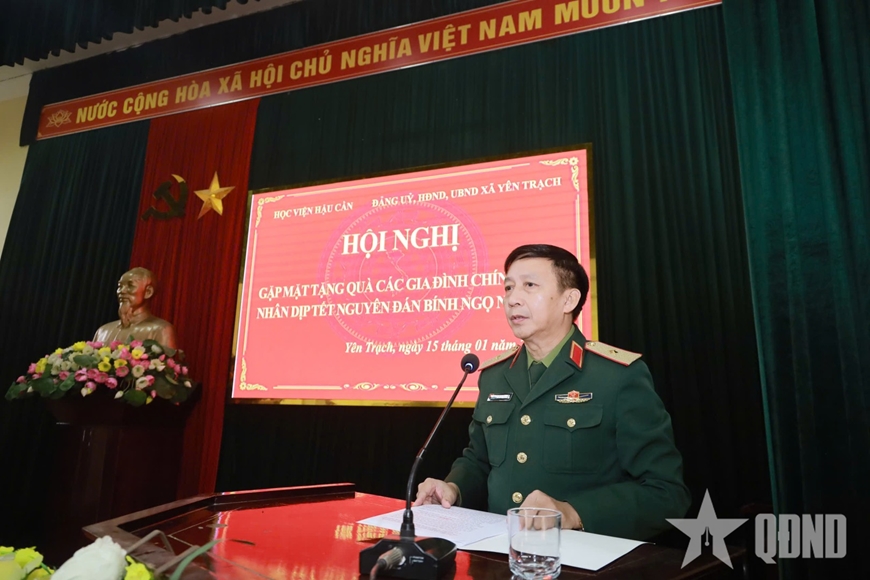 Phát biểu tại buổi gặp mặt, Thiếu tướng Lê Thành Long nhấn mạnh, Học viện Hậu cần luôn coi việc giữ gìn, vun đắp mối quan hệ đoàn kết, gắn bó với xã Yên Trạch vừa là nhiệm vụ chính trị, vừa là tình cảm thiêng liêng đối với mảnh đất cội nguồn.