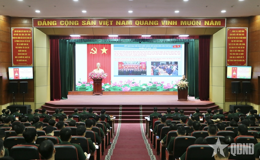 Tại hội nghị, Trung tướng Dương Đức Thiện thông tin tới cán bộ, đảng viên về nội dung, chương trình Đại hội đại biểu Đảng bộ Quân đội lần thứ XII; những thành tựu, kết quả nổi bật trong lãnh đạo thực hiện nhiệm vụ quân sự, quốc phòng, xây dựng Đảng bộ Quân đội nhiệm kỳ 2020-2025; những chỉ đạo, định hướng, nội dung trọng tâm mà Đảng bộ Quân đội và toàn quân tập trung thực hiện trong nhiệm kỳ 2025-2030...
