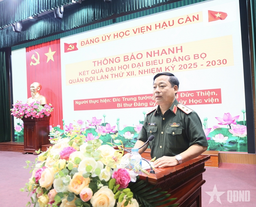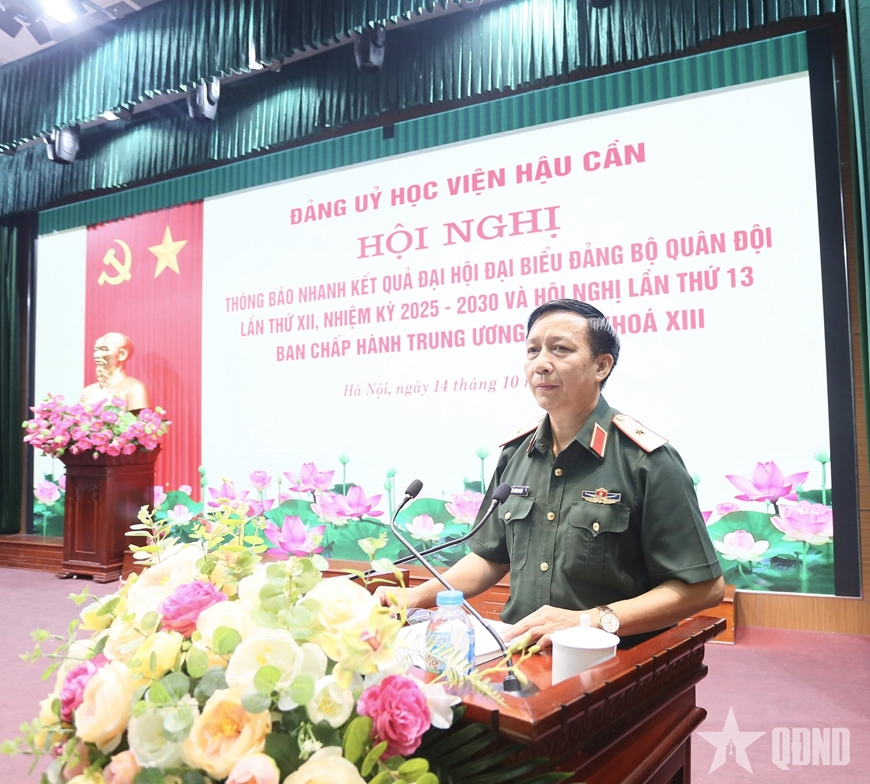 Phát biểu chỉ đạo tại hội nghị, Trung tướng Dương Đức Thiện, Bí thư Đảng ủy, Chính ủy Học viện yêu cầu các cấp ủy, tổ chức đảng trong Đảng bộ Học viện nhanh chóng tổ chức thông tin, quán triệt kết quả Đại hội đại biểu Đảng bộ Quân đội lần thứ XII và Hội nghị Trung ương 13 khóa XIII, gắn với triển khai thực hiện hiệu quả Nghị quyết Đại hội Đảng bộ Học viện Hậu cần lần thứ XXIII, nhiệm kỳ 2025-2030; tiếp tục phát huy truyền thống Học viện hai lần anh hùng, ra sức thi đua xây dựng Học viện vững mạnh toàn diện “mẫu mực, tiêu biểu”, hoàn thành xuất sắc mọi nhiệm vụ.