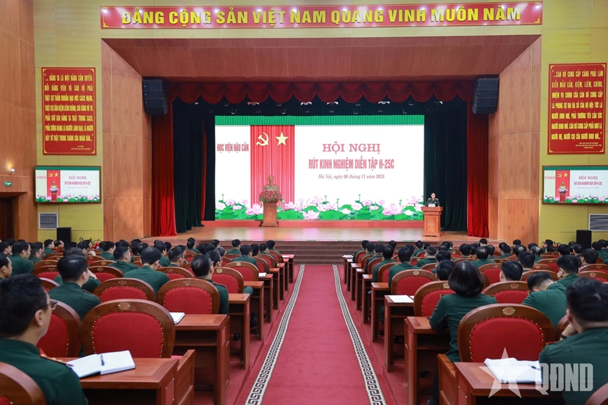 Phát biểu kết luận hội nghị, Trung tướng, GS, TS Phan Tùng Sơn, Giám đốc Học viện biểu dương tinh thần trách nhiệm, sự cố gắng, nỗ lực của cán bộ, giảng viên, học viên và các cơ quan, đơn vị tham gia diễn tập. Đồng thời khẳng định: Cuộc diễn tập H-25C đã hoàn thành toàn diện mục tiêu, yêu cầu đề ra, thể hiện sự nỗ lực, đoàn kết, sáng tạo và tinh thần trách nhiệm cao của toàn Học viện. Kết quả diễn tập đã góp phần kiểm nghiệm, bổ sung, hoàn thiện nội dung, chương trình huấn luyện, nâng cao năng lực thực hành cho cán bộ, giảng viên, học viên, qua đó khẳng định bước phát triển mới trong quá trình đổi mới công tác huấn luyện, diễn tập của Học viện.