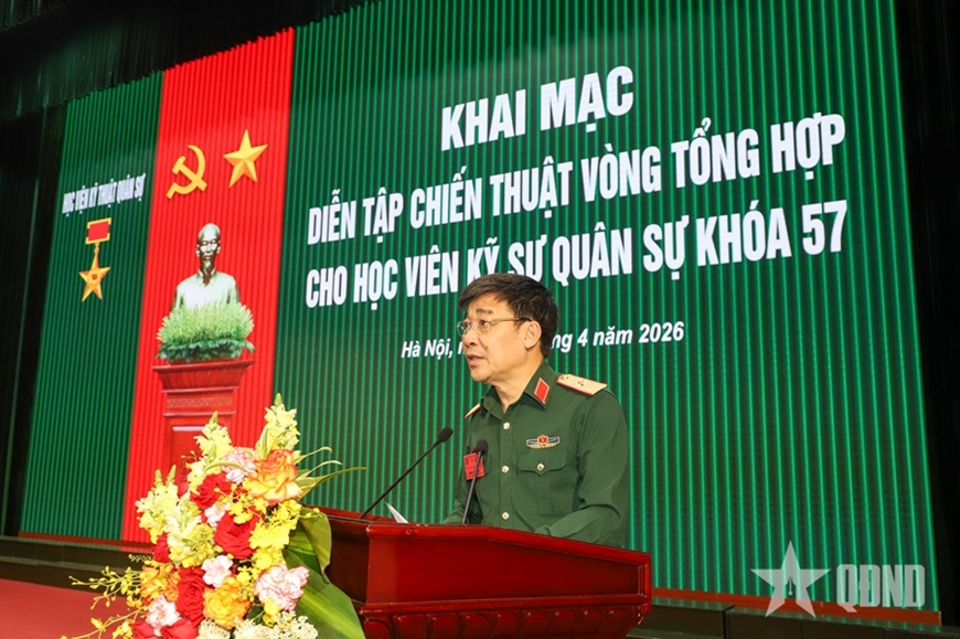 Sáng 9-4, tại Hà Nội, Học viện Kỹ thuật Quân sự tổ chức khai mạc Diễn tập chiến thuật vòng tổng hợp cho học viên đào tạo kỹ sư quân sự với đề mục: “Đại đội sửa chữa, trạm sửa chữa, trạm bảo đảm kỹ thuật, đại đội công binh chuyển trạng thái sẵn sàng chiến đấu; hành quân, trú quân chiến đấu; bảo đảm sửa chữa, cứu kéo; bảo đảm công binh trong tiến công địch phòng ngự trận địa và tiến công địch đổ bộ đường không”.