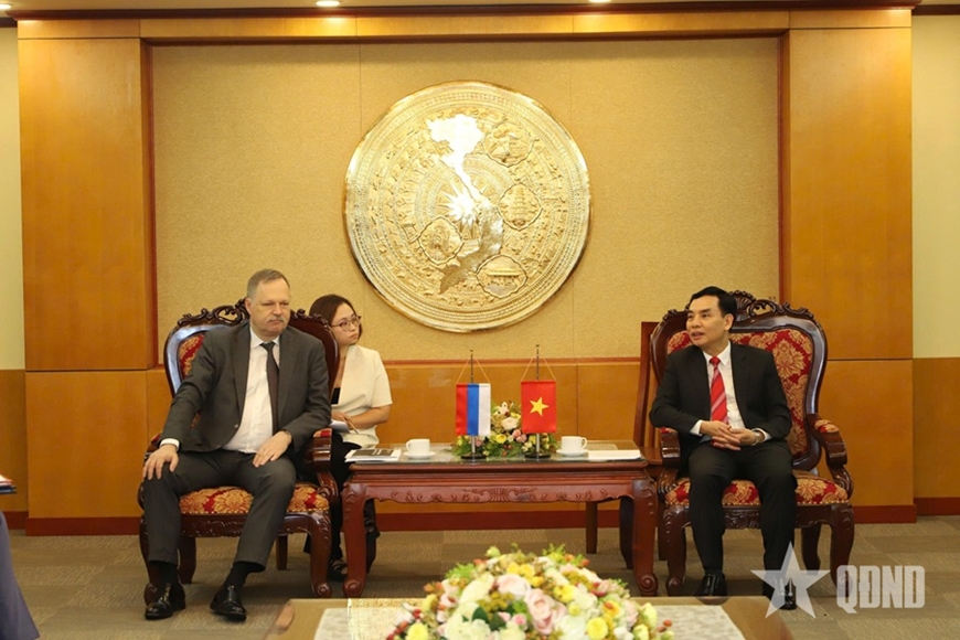 | Thủ trưởng Học viện Kỹ thuật Quân sự đón tiếp và làm việc với Hiệu trưởng Đại học Kỹ thuật Quốc gia mang tên N.E.Bauman, Liên bang Nga. |