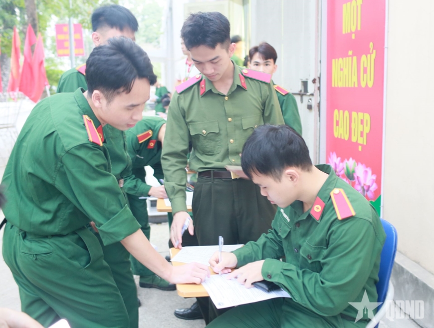 | Đoàn viên thanh niên Học viện Quân y đăng ký hiến máu. |