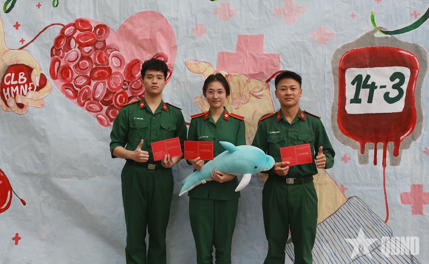 Đại diện tuổi trẻ Học viện Quân y tham gia hiến máu, Thượng sĩ Đỗ Thị Huyền, Đoàn viên Chi đoàn DH56D/Đoàn cơ sở Hệ 4 chia sẻ: “Đây là lần thứ 3 tôi tham gia hiến máu. Mỗi lần như vậy, tôi vẫn cảm thấy hạnh phúc khi biết dòng máu của mình và các bạn học viên đang góp phần giúp một ai đó vượt qua bệnh tật. Hoạt động hôm nay là minh chứng sinh động cho tinh thần xung kích, tình nguyện của tuổi trẻ Học viện Quân y”.