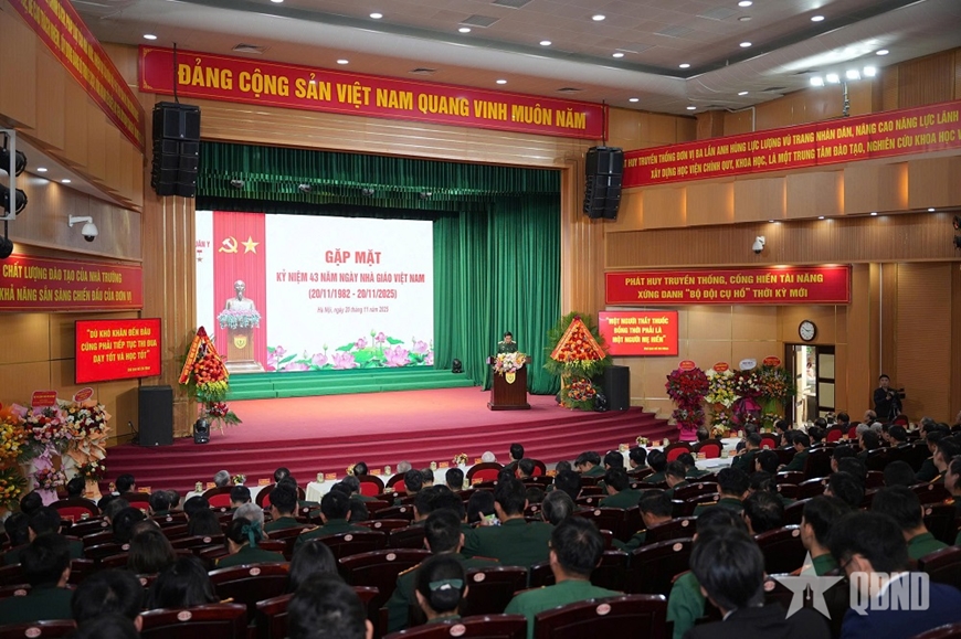 Tại buổi gặp mặt, các đại biểu được nghe thư của Bộ trưởng Bộ Quốc phòng gửi đội ngũ nhà giáo, cán bộ quản lý giáo dục trong Quân đội nhân Ngày Nhà giáo Việt Nam.