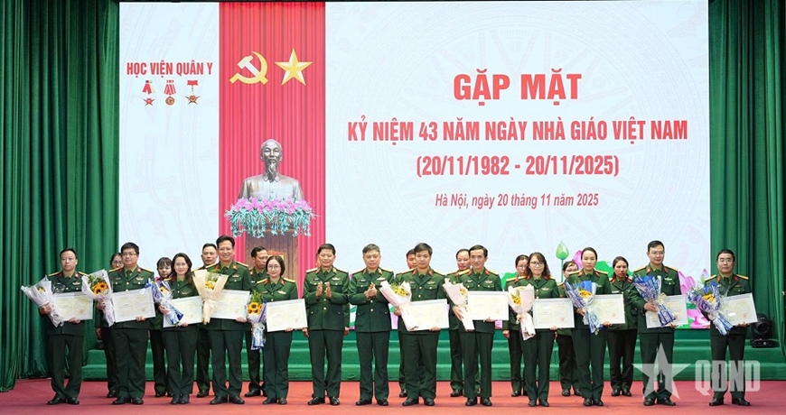 Tại buổi gặp mặt, lãnh đạo Học viện Quân y tặng hoa các Nhà giáo Nhân dân, Nhà giáo Ưu tú nguyên là thủ trưởng học viện qua các thời kỳ; chúc mừng các nhà giáo đạt chuẩn chức danh Giáo sư, Phó giáo sư năm 2025; các nhà giáo được công nhận chức danh Giảng viên cao cấp năm 2024, 2025; trao danh hiệu Giảng viên dạy giỏi cấp Học viện năm học 2024-2025; công bố quyết định khen thưởng và trao học bổng IBS.