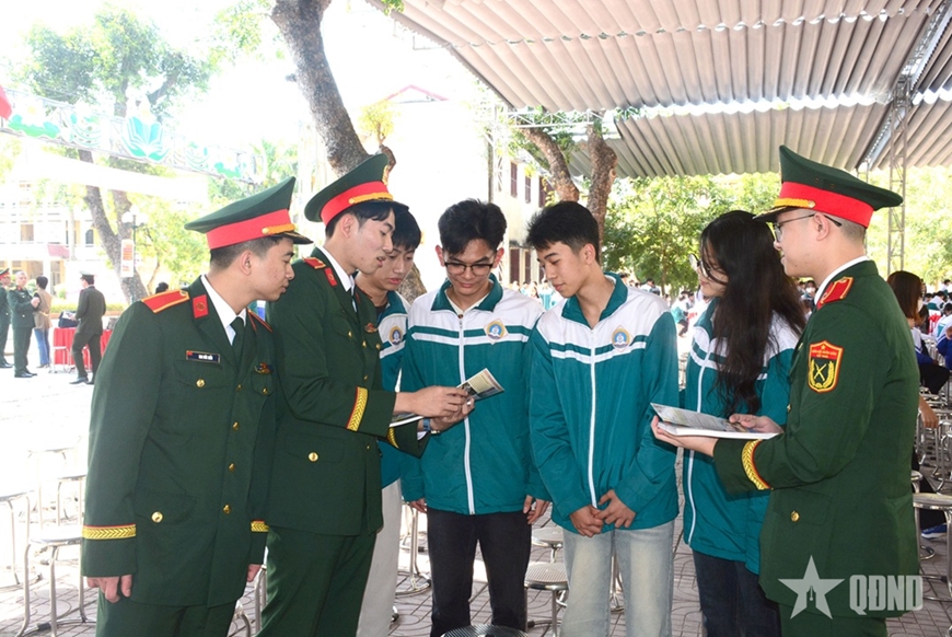 | Học viên Học viên Quân y tận tình tư vấn hướng nghiệp cho các em học sinh. |
