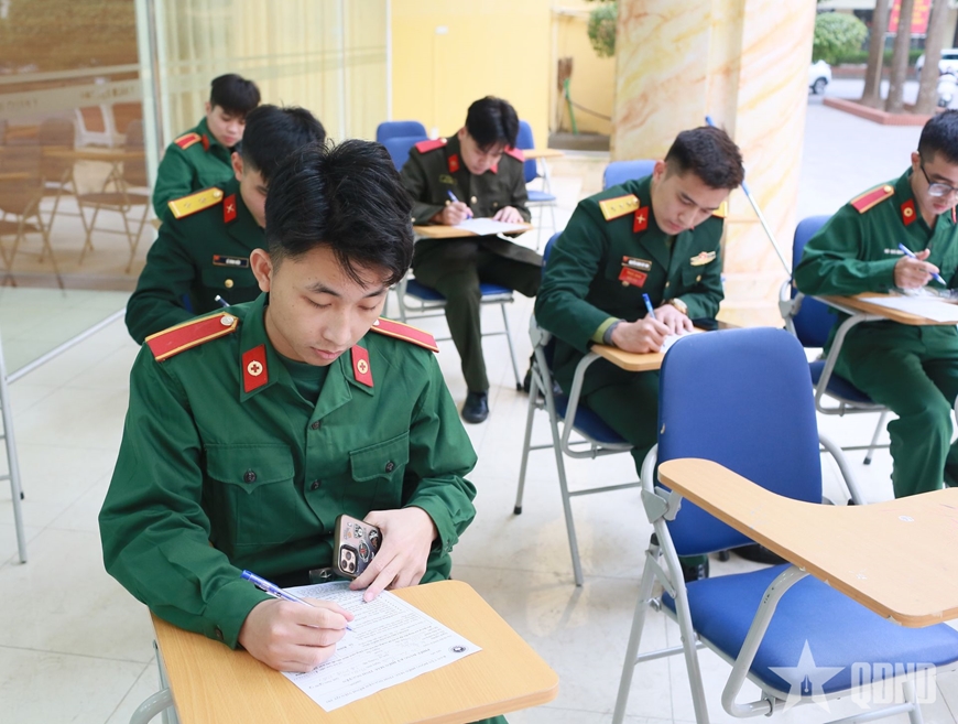 Học viên Học viện Quân y hăng hái đăng ký tham gia hiến máu.