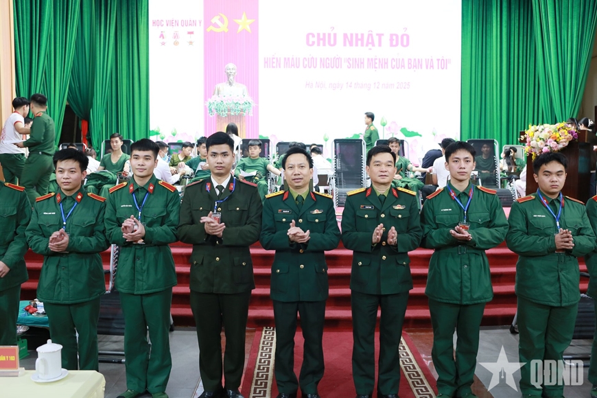 Phát biểu tại chương trình, Đại tá Vũ Quyết Thắng nhấn mạnh, tham gia Ngày hội hiến máu tình nguyện “Chủ nhật đỏ” là một trong những hoạt động thiết thực của tuổi trẻ Học viện Quân y hưởng ứng phong trào hiến máu tình nguyện trong tuổi trẻ toàn quân năm 2025 do Tổng cục Chính trị phát động.