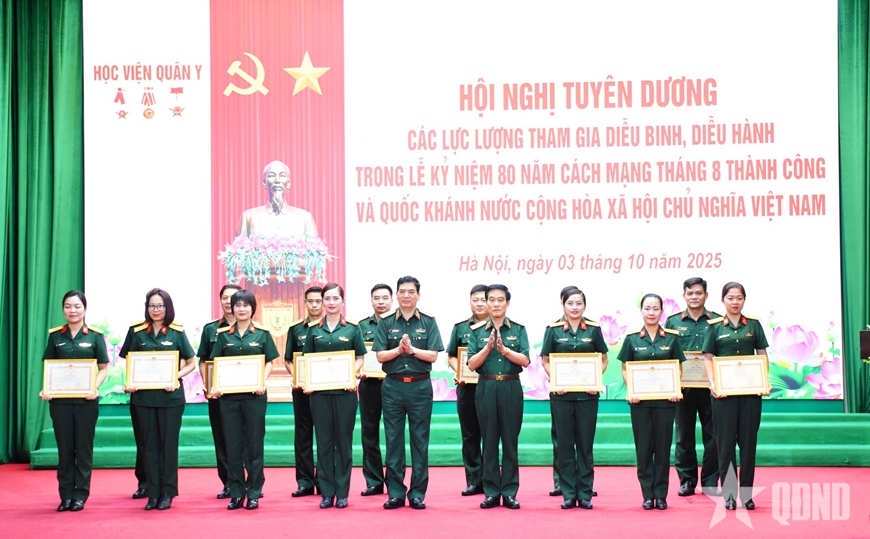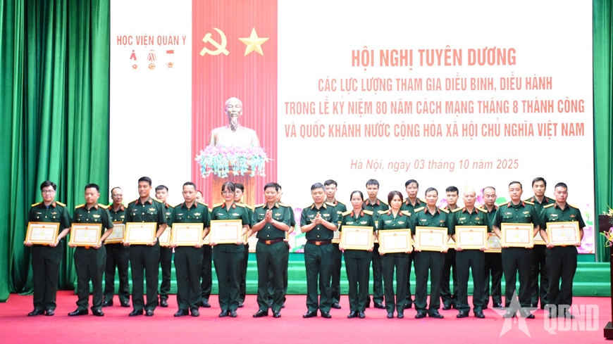 Tại hội nghị tuyên dương, Học viện Quân y tổ chức trao thưởng cho các đồng chí trực tiếp tham gia và bảo đảm quân y trong quá trình diễu binh, diễu hành.