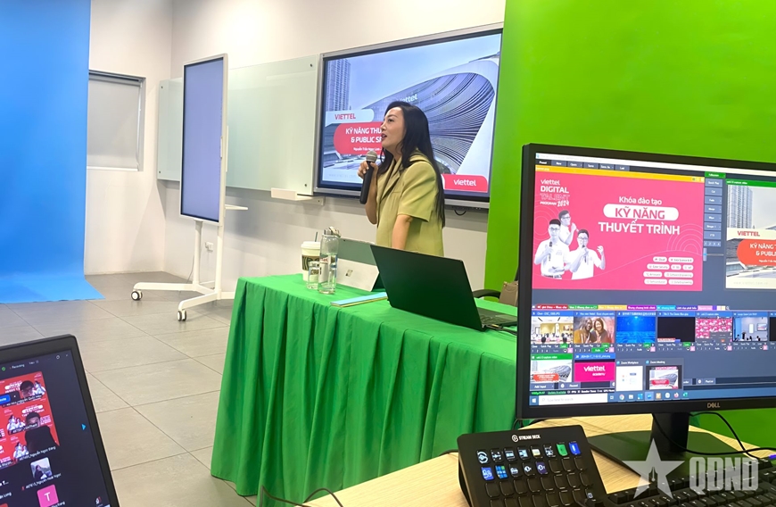 | Học viện Viettel đưa vào sử dụng phòng học thông minh với công nghệ trường quay ảo. Ảnh: HOÀNG ANH |