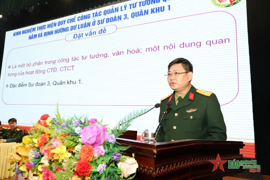 Phát biểu chỉ đạo Hội thảo, đồng chí Trung tướng Nguyễn Quốc Tuấn, Bí thư Đảng ủy, Chính ủy Trường Sĩ quan Chính trị khẳng định: Công tác quản lý tư tưởng ở đơn vị cơ sở trực tiếp giúp cho cấp ủy, tổ chức đảng, người chỉ huy, chính ủy, chính trị viên, cơ quan chính trị các cấp nắm chắc tình hình tư tưởng, có dự báo, phân tích, đánh giá, giải quyết, định hướng tư tưởng đúng đắn; kịp thời đấu tranh những biểu hiện tiêu cực, lạc hậu; hạn chế, ngăn chặn vi phạm pháp luật, kỷ luật, góp phần giữ vững trận địa tư tưởng của Đảng trong Quân đội; nâng cao sức mạnh tổng hợp, khả năng sẵn sàng chiến đấu, xây dựng đơn vị vững mạnh toàn diện “mẫu mực, tiêu biểu”.