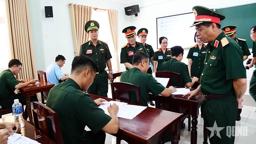 Thượng tướng Nguyễn Văn Nghĩa kiểm tra thí sinh thực hành thi. |
