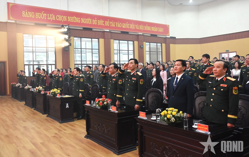 Trung tướng, PGS, TS Đặng Sỹ Lộc, Giám đốc Học viện Chính trị dự, chỉ đạo buổi lễ. Cùng dự có Trung tướng, PGS, TS Nguyễn Bá Hùng, Bí thư Đảng ủy, Chính ủy Học viện Chính trị.