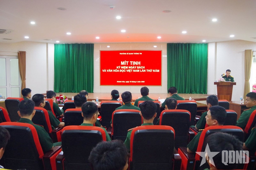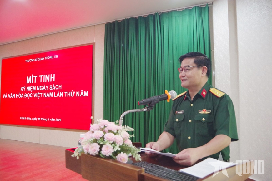 Chiều 16-4, Trường Sĩ quan Thông tin tổ chức mít tinh kỷ niệm Ngày Sách và Văn hóa đọc Việt Nam lần thứ 5 năm 2026. Đại tá, TS Nguyễn Danh Khoa, Phó hiệu trưởng nhà trường dự và chỉ đạo.